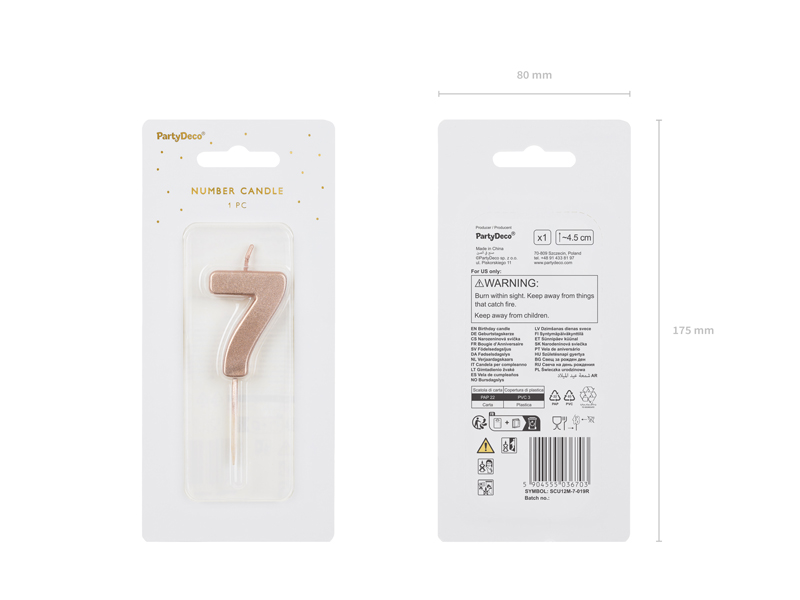 Świeczka urodzinowa Cyferka 7 różowe złoto 4.5 cm