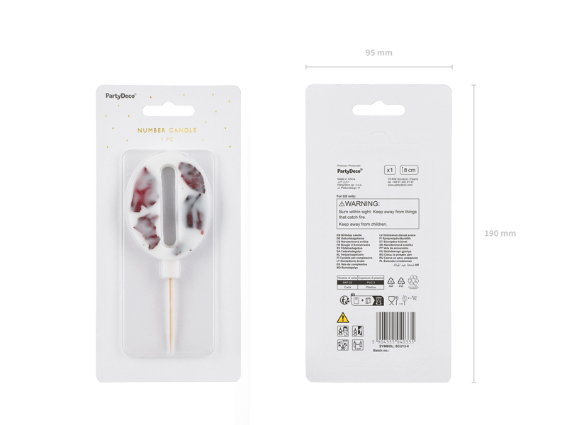 Świeczka urodzinowa Cyfra 0 biała z płatkami kwiatów 8 cm