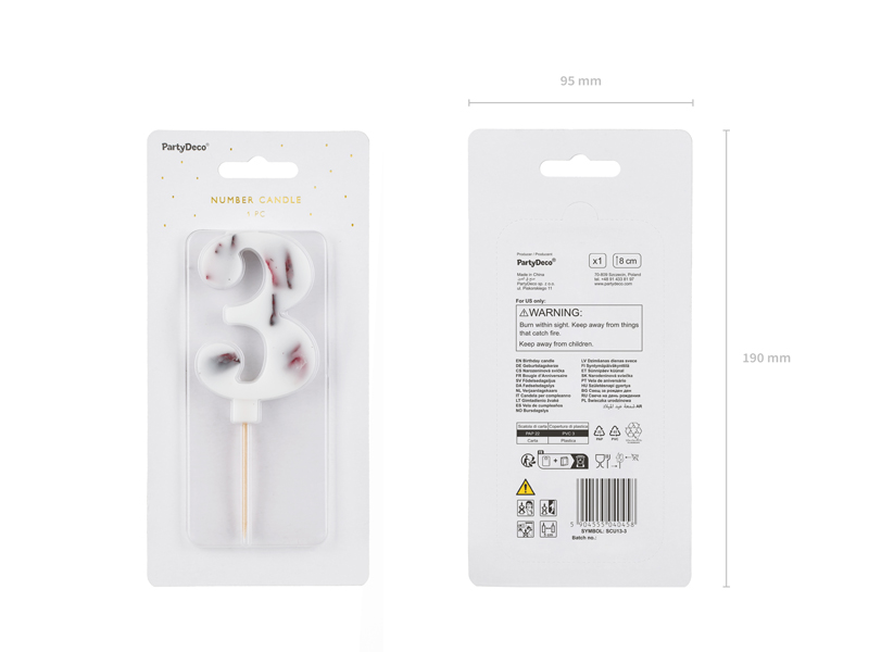 Świeczka urodzinowa Cyfra 3 biała z płatkami kwiatów 8 cm