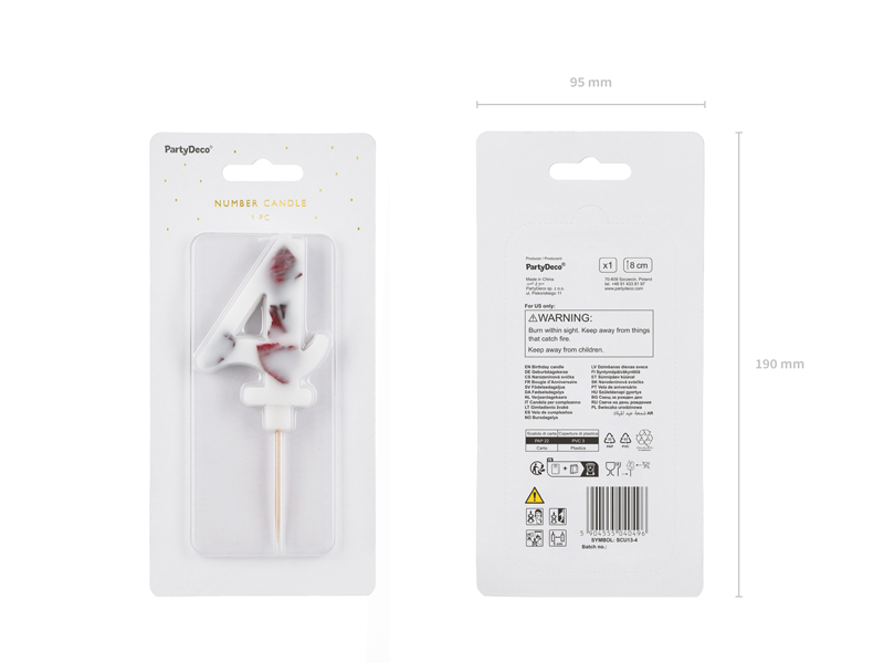 Świeczka urodzinowa Cyfra 4 biała z płatkami kwiatów 8 cm