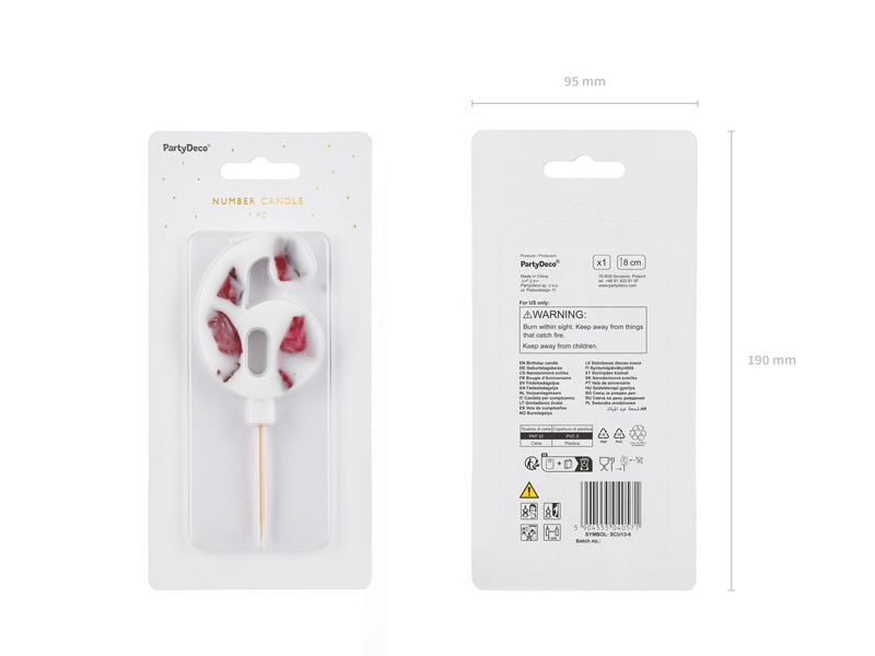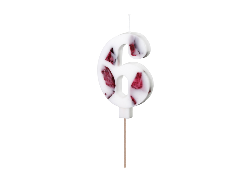 Świeczka urodzinowa Cyfra 6 biała z płatkami kwiatów 8 cm