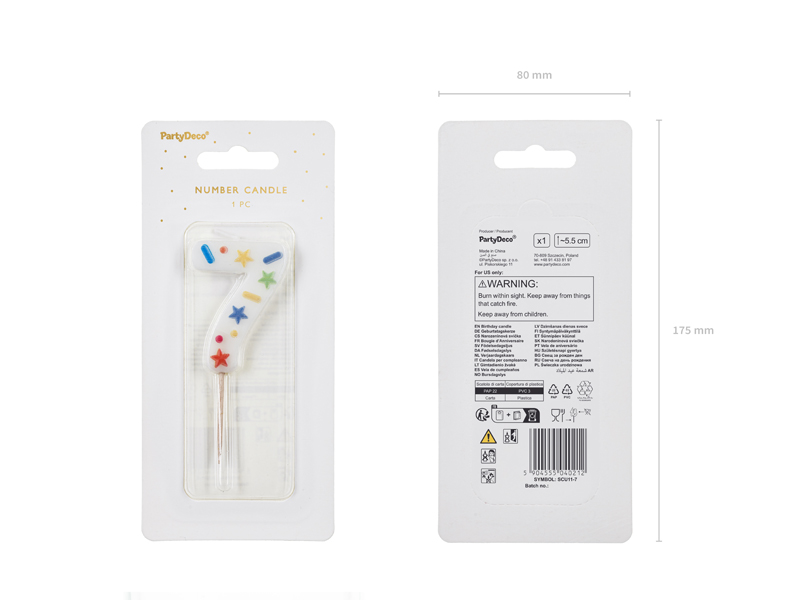 Świeczka urodzinowa Cyfra 7 biała konfetti 5.5 cm