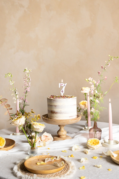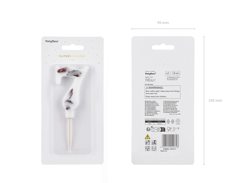 Świeczka urodzinowa Cyfra 7 biała z płatkami kwiatów 8 cm