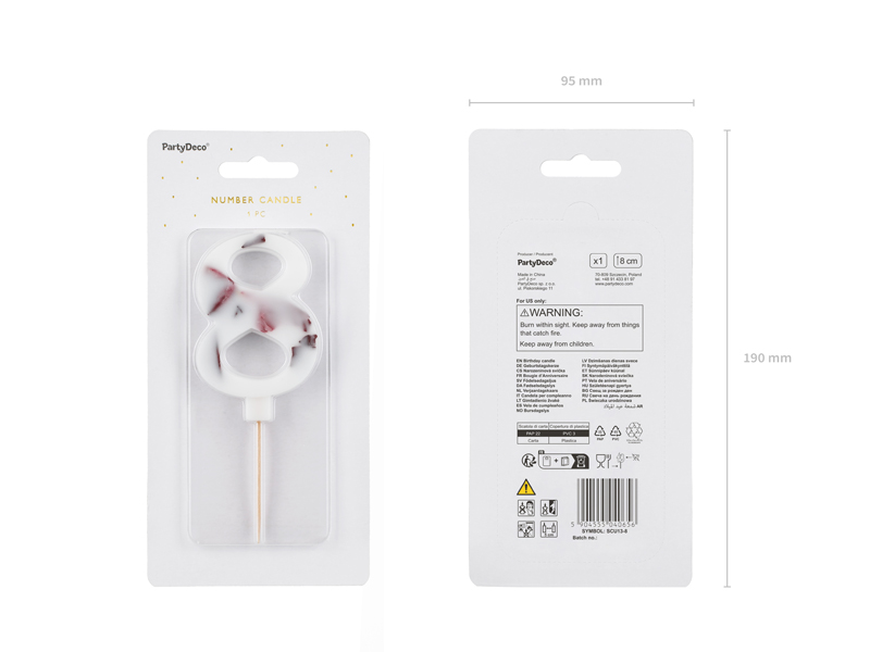 Świeczka urodzinowa Cyfra 8 biała z płatkami kwiatów 8 cm
