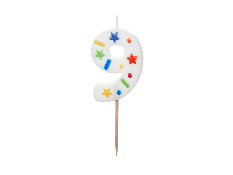 Świeczka urodzinowa Cyfra 9 biała konfetti 5.5 cm