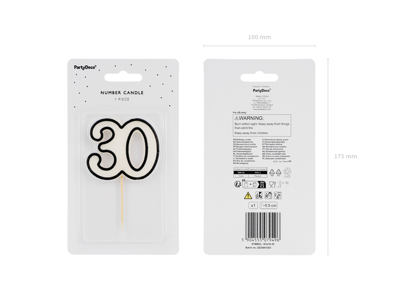 Świeczka urodzinowa liczba 30 5,5 cm biało-czarny