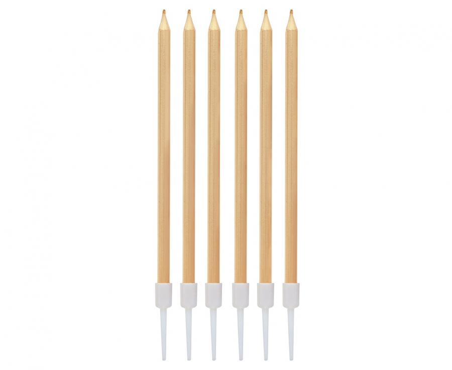 Świeczki metaliczne jasnozłote 13.5 x 0.4 cm 6 szt