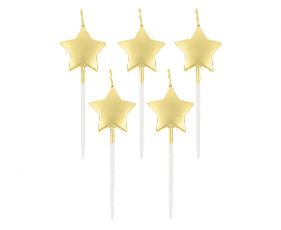 Świeczki pikery Gwiazdki metaliczne złote 5 szt