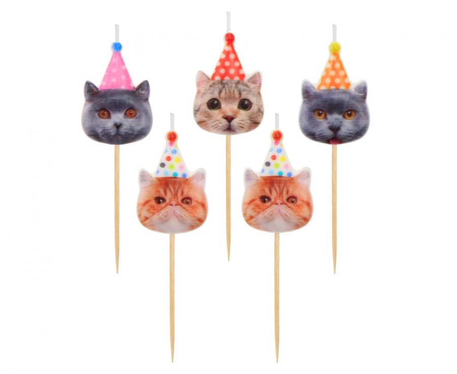 Świeczki pikery Kotki w czapeczkach 5 szt