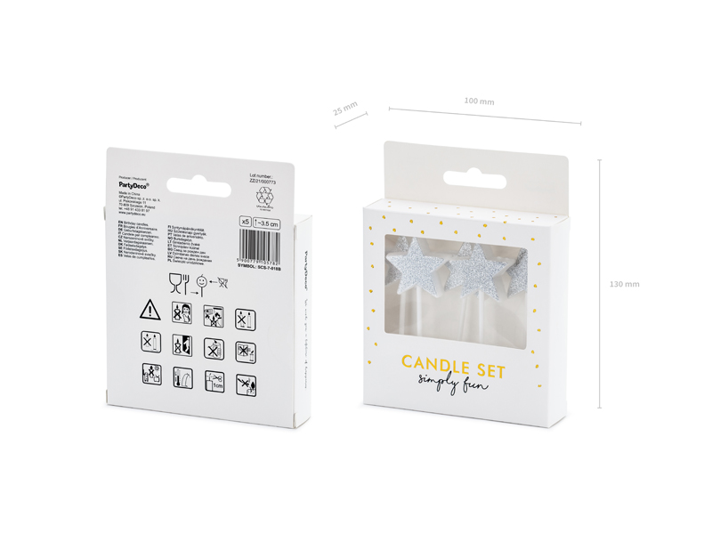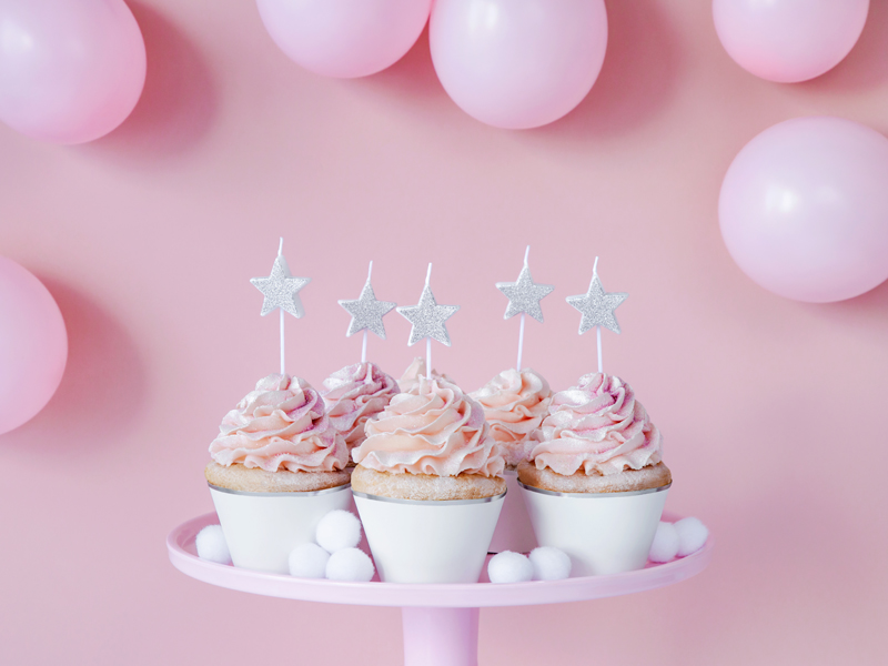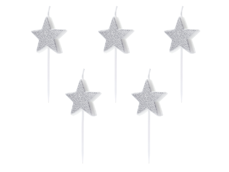 Świeczki urodzinowe Gwiazdki srebrny 3,5 cm