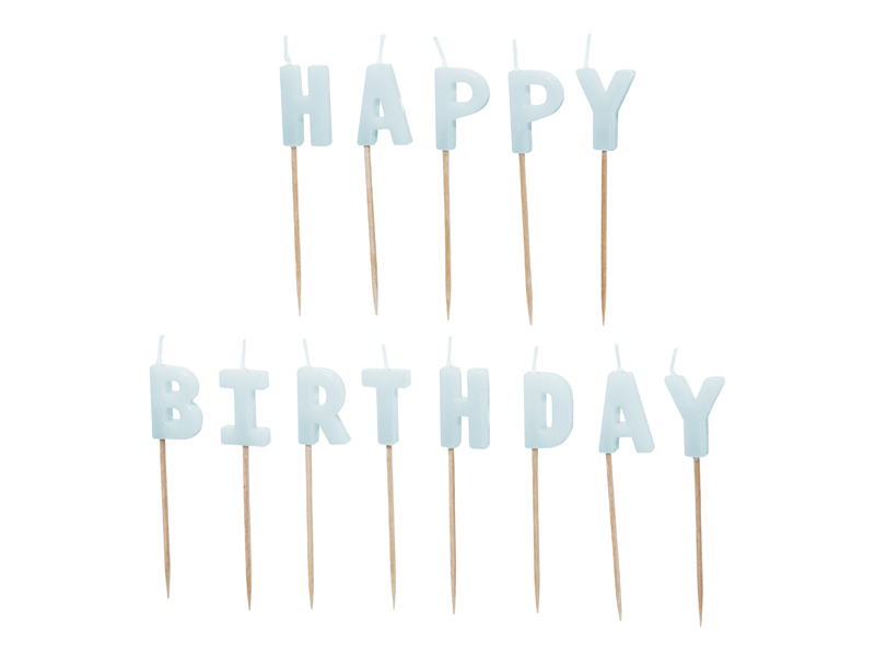 Świeczki urodzinowe Happy Birthday 2,5 cm jasny błękit