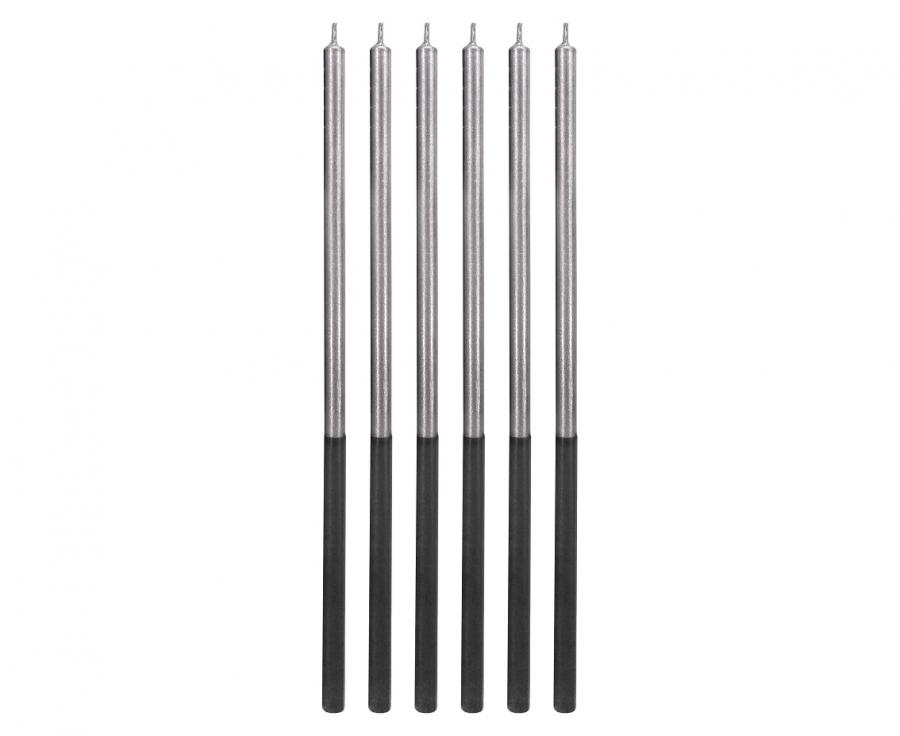 Świeczki urodzinowe Platinum srebrne wys. 14.5 cm 6 szt