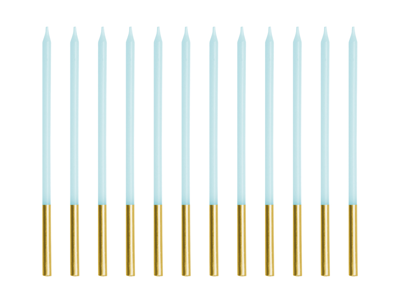 Świeczki urodzinowe długie gładkie jasny błękit 14 cm 12 szt