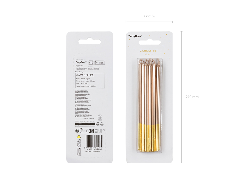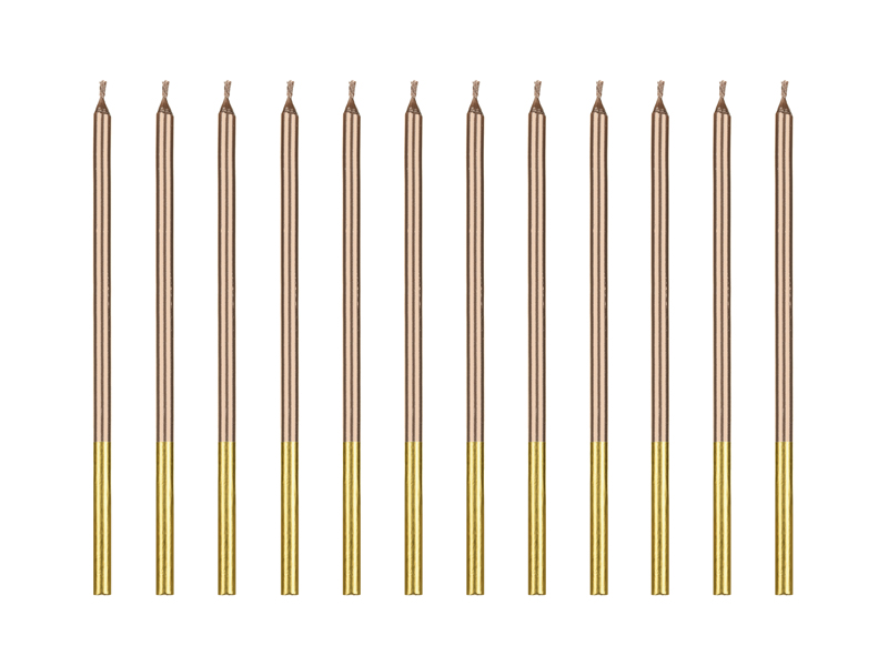 Świeczki urodzinowe długie gładkie różowe złoto 14 cm 12 szt