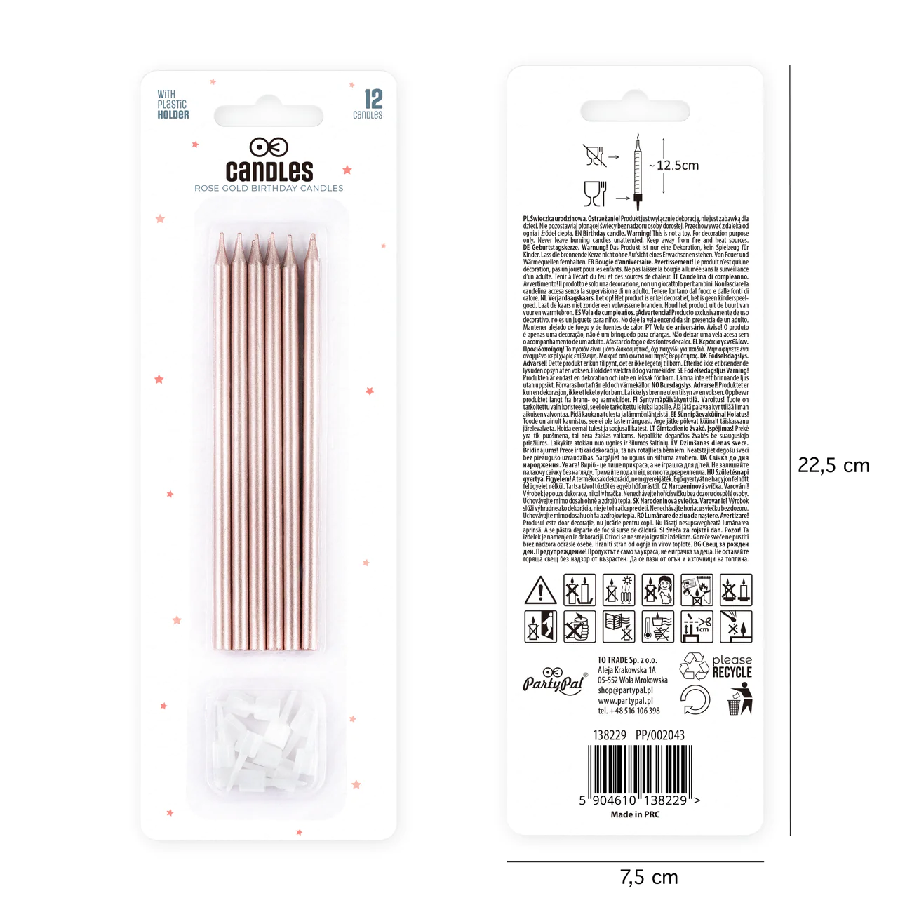 Świeczki urodzinowe długie różowe złoto 13 cm 12 szt