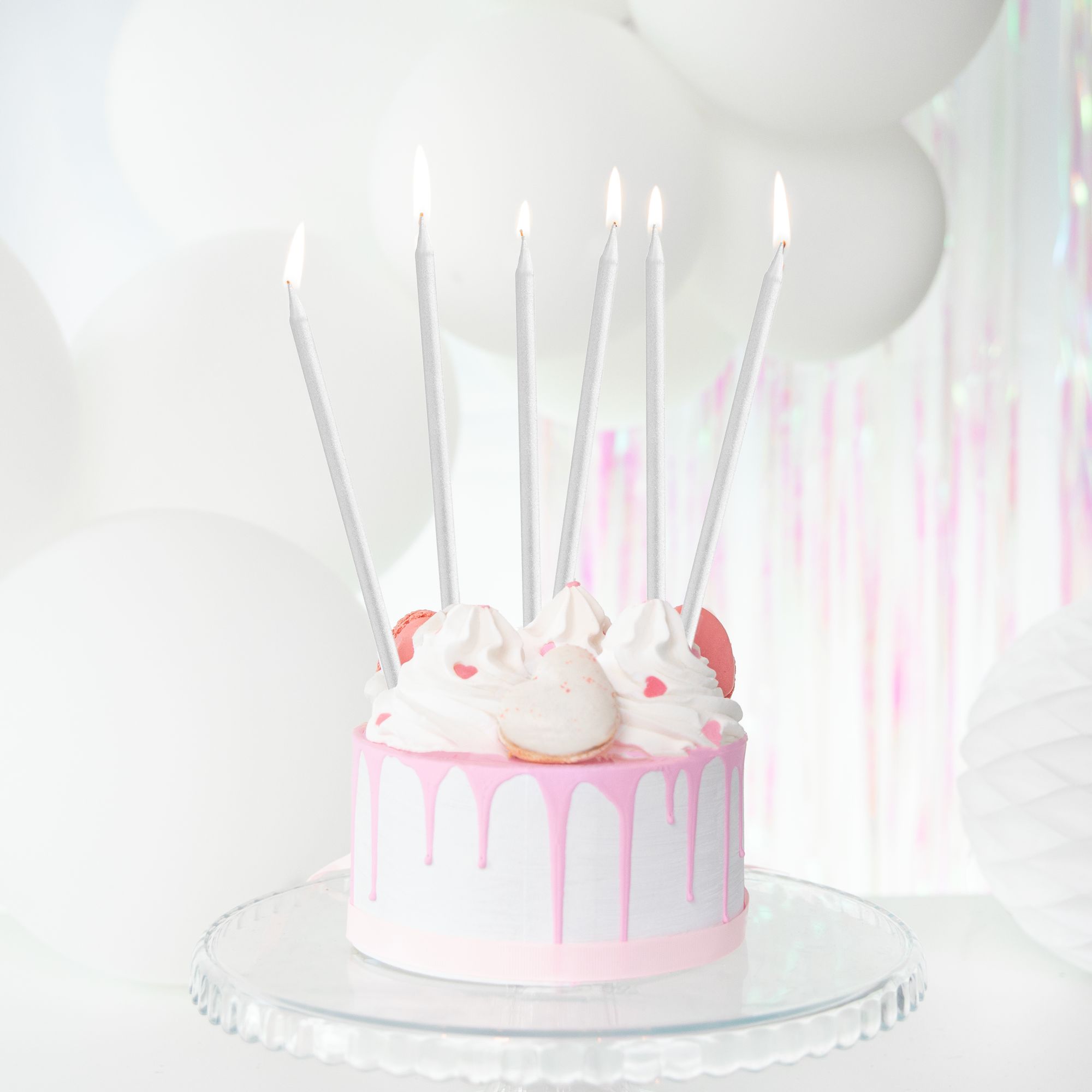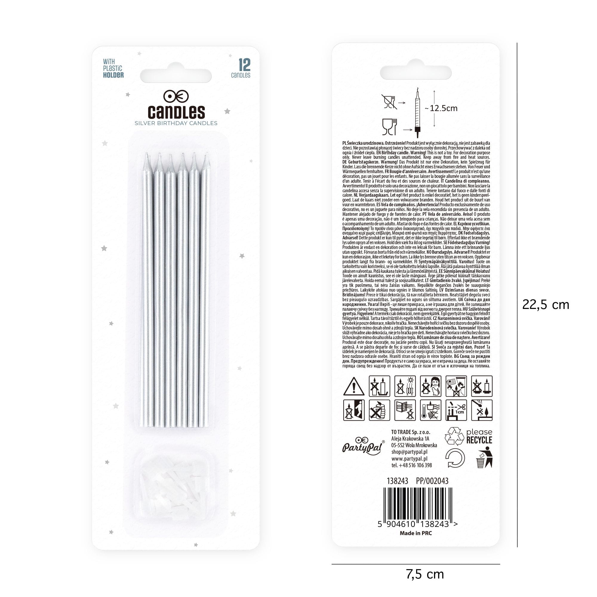 Świeczki urodzinowe długie srebrne 13 cm 12 szt