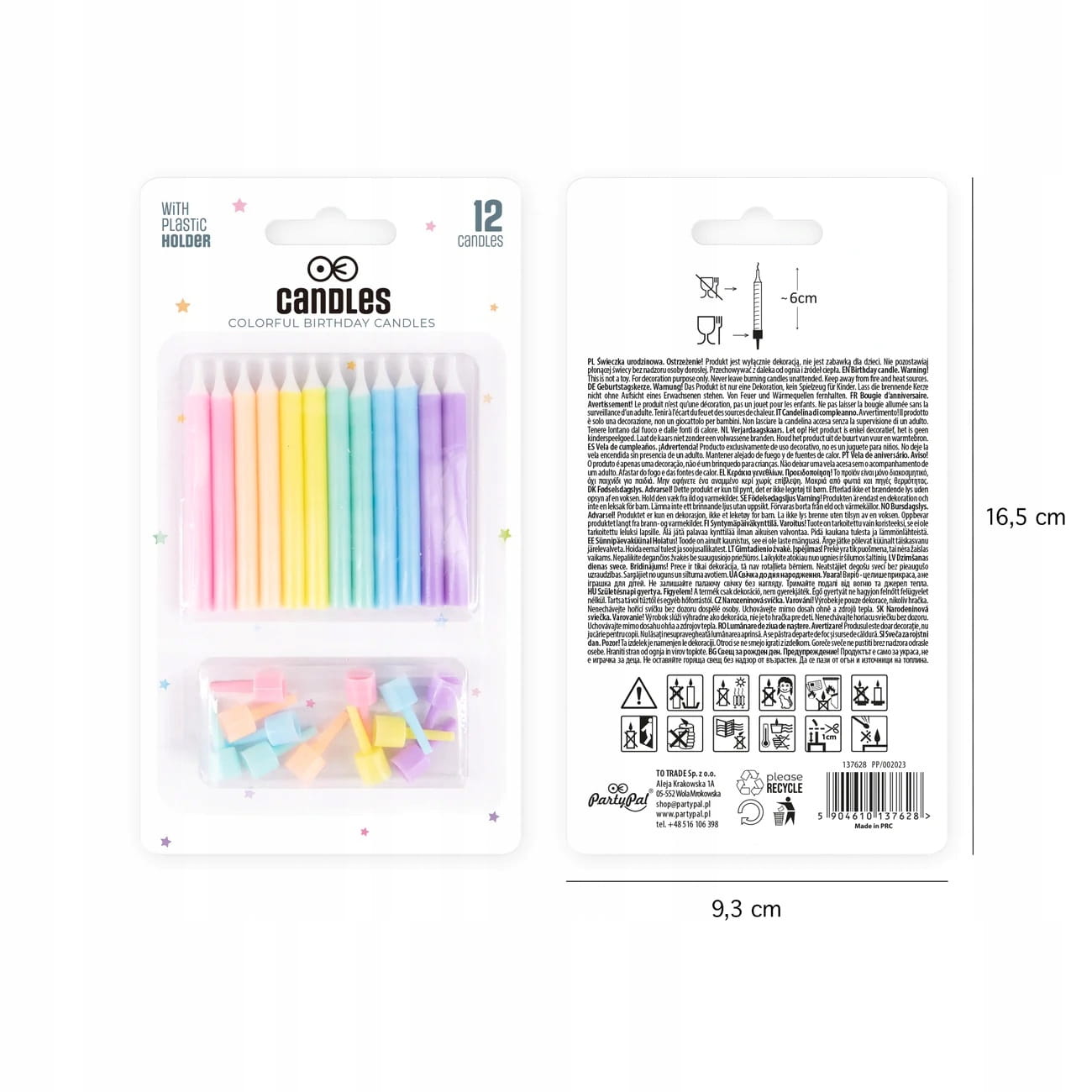Świeczki urodzinowe kolorowe 6 cm 12 szt