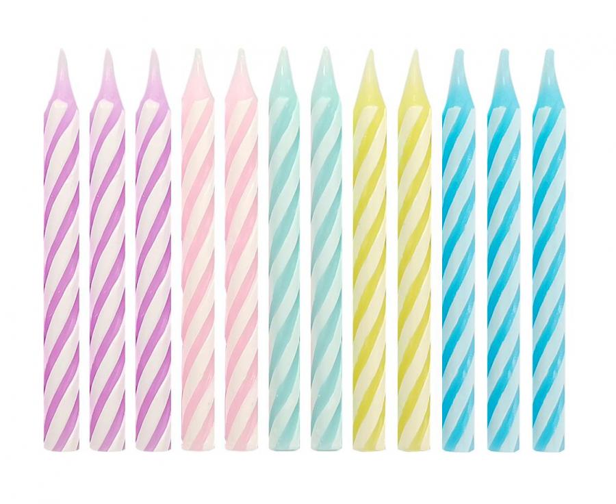Świeczki urodzinowe makaronikowe z paseczkiem 6 cm 24 szt