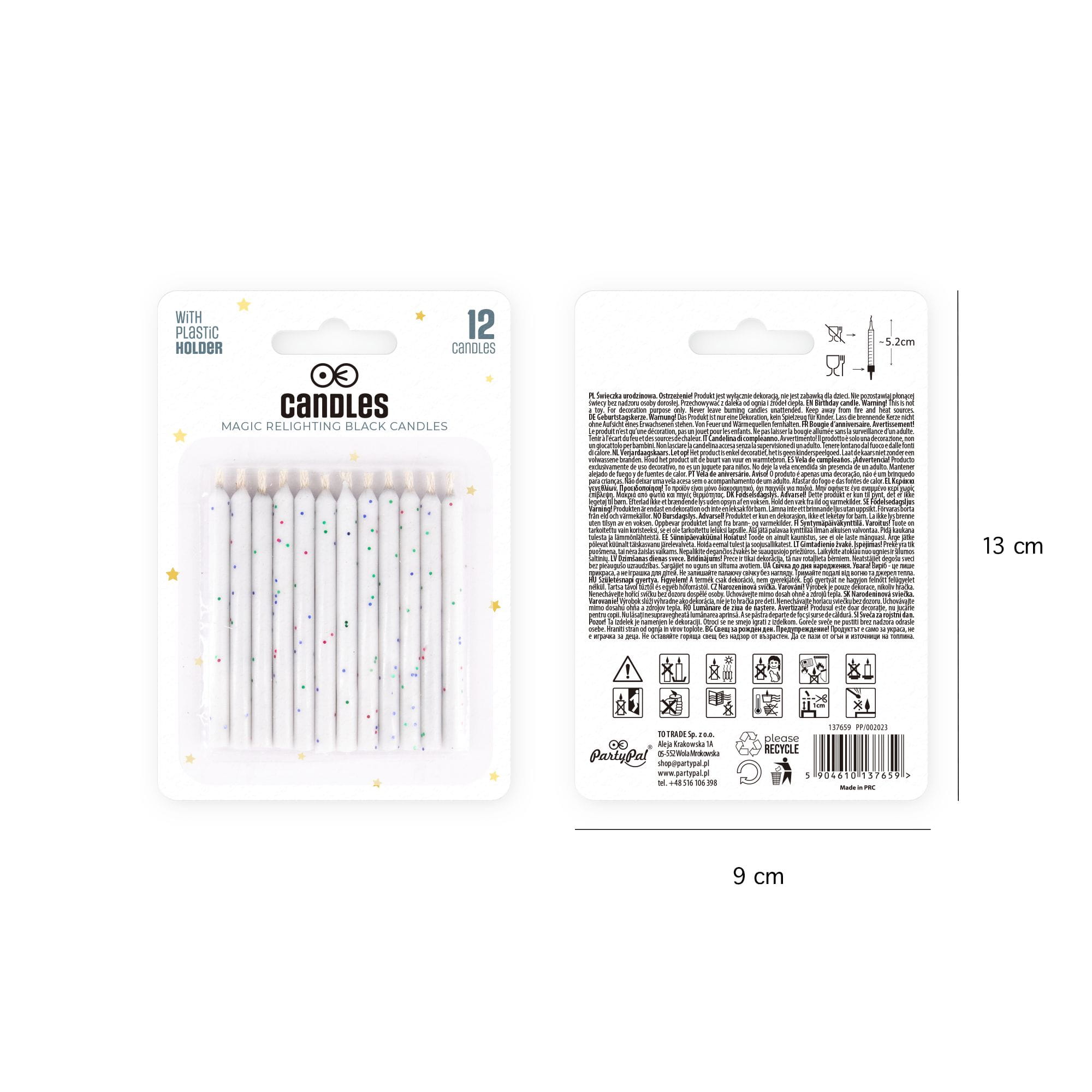 Świeczki urodzinowe niegasnące białe z kolorowym brokatem 12 szt