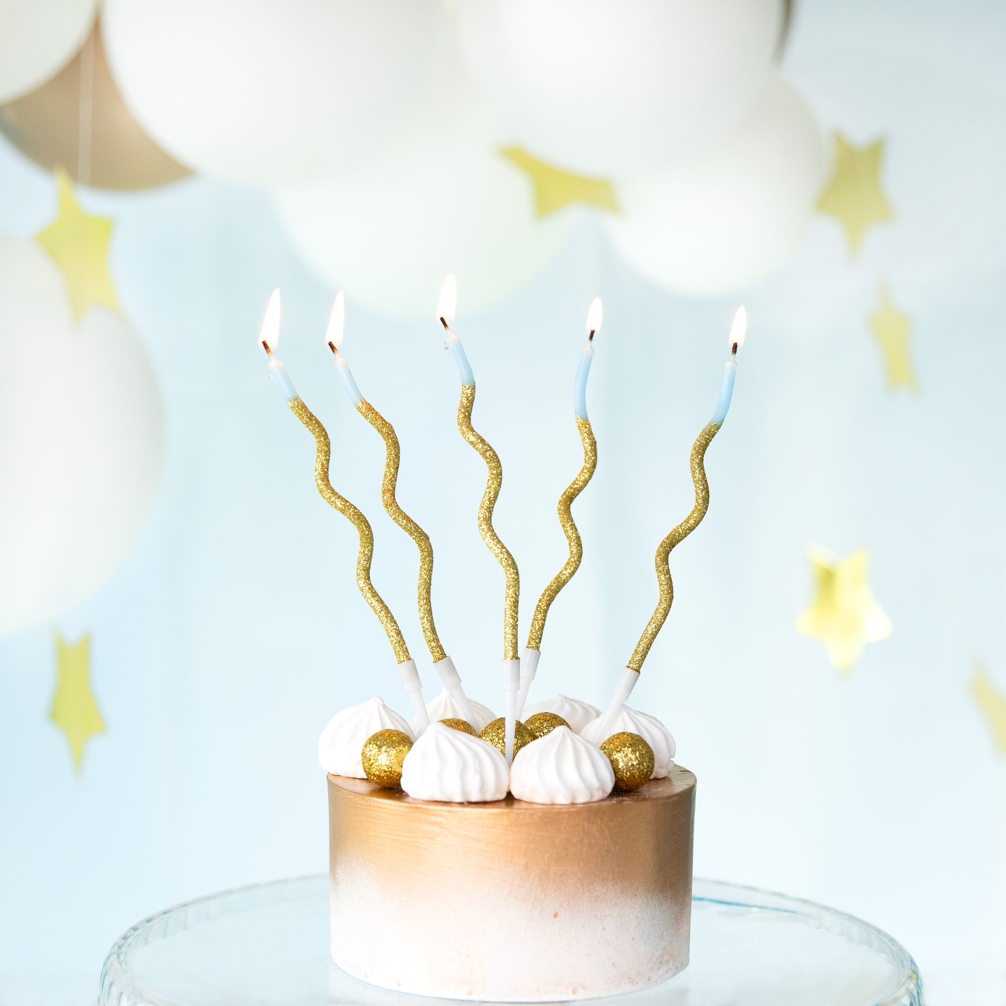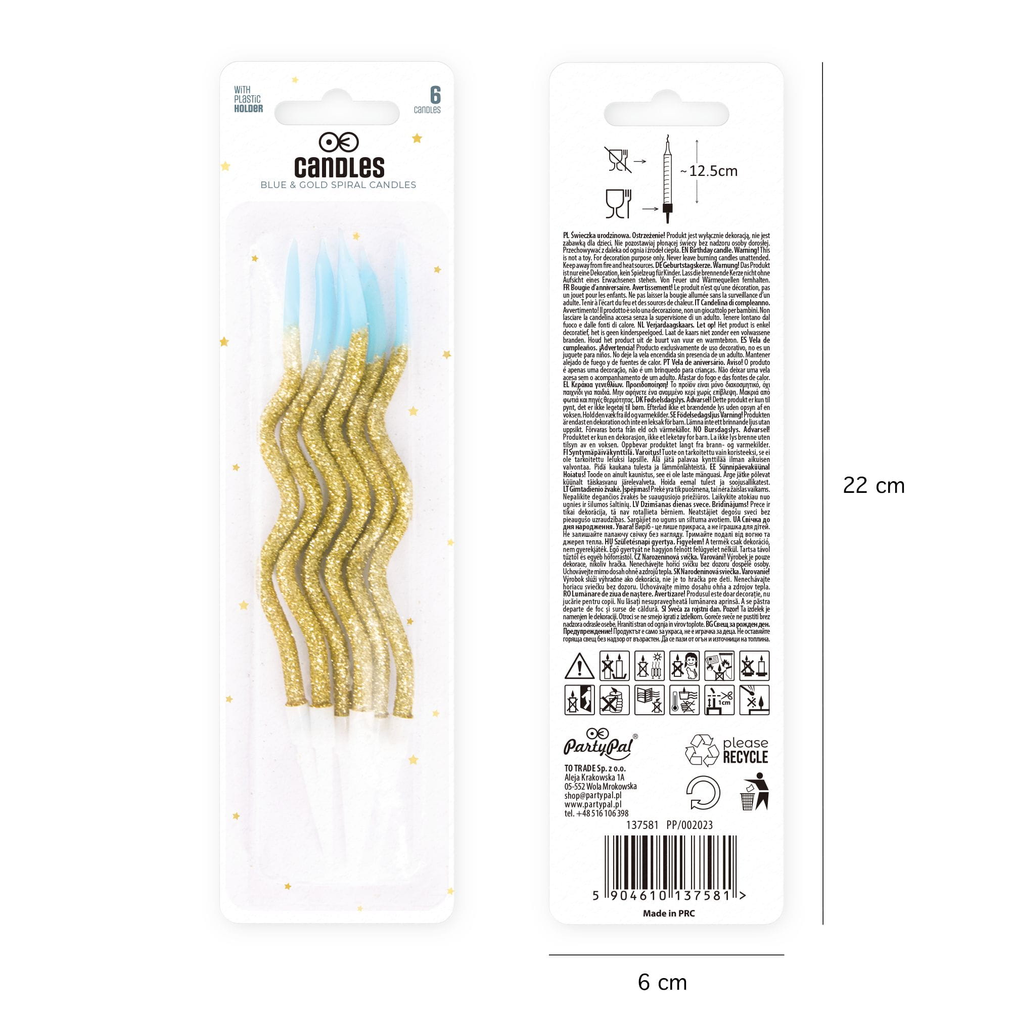 Świeczki urodzinowe spiralne złoto-niebieskie 12 cm 6 szt