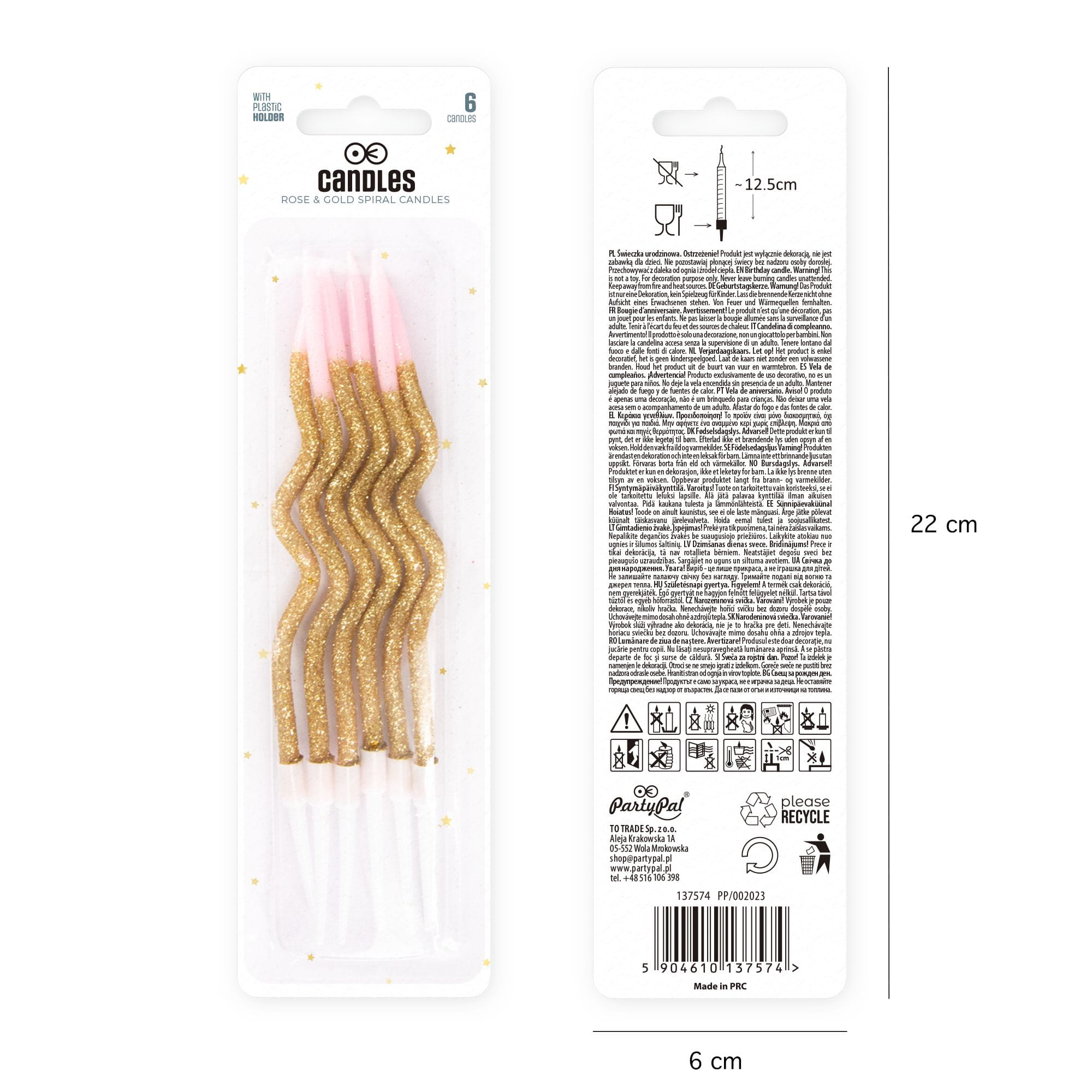 Świeczki urodzinowe spiralne złoto-różowe 12 cm 6 szt