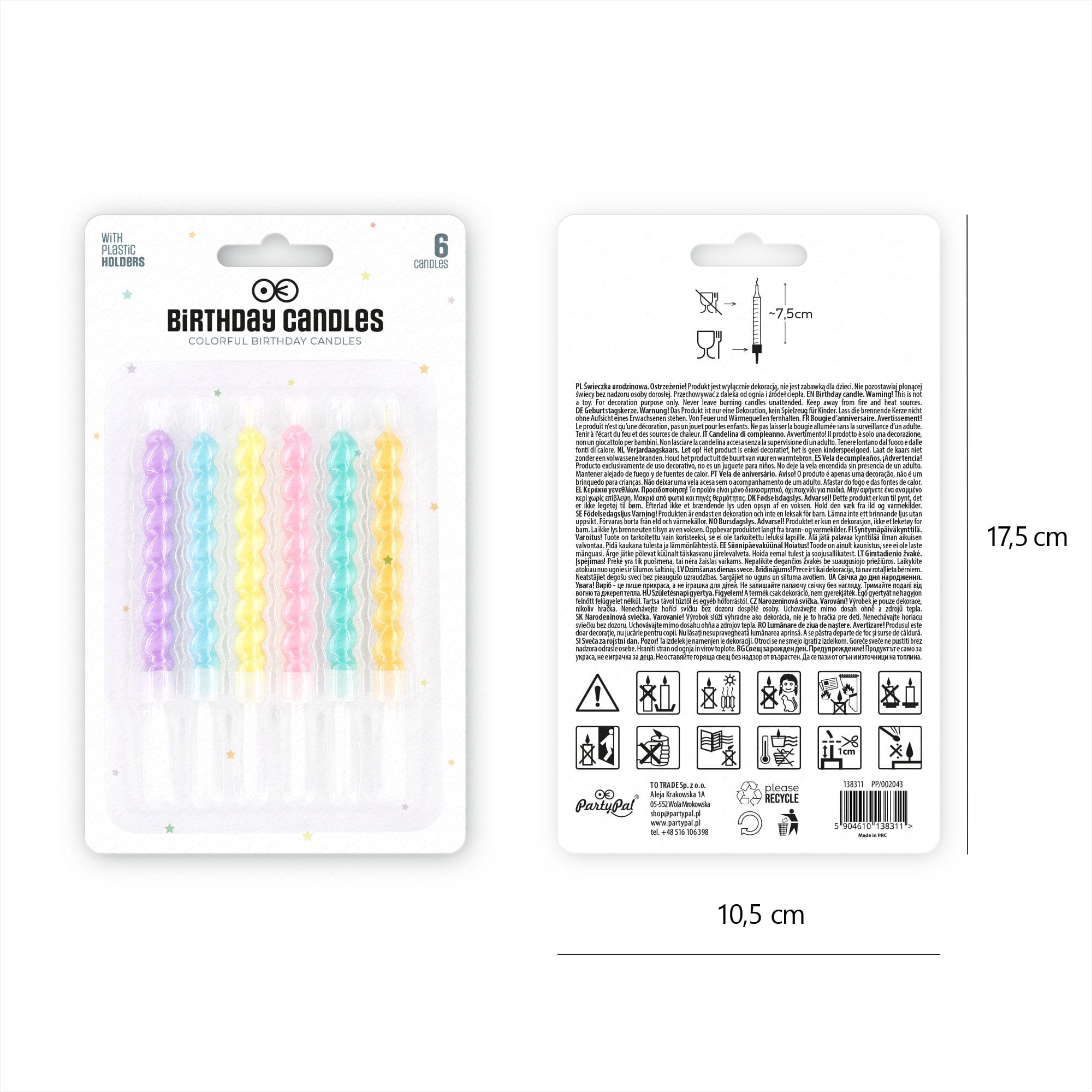Świeczki urodzinowe świderki grube kolorowe 7 cm 6 szt