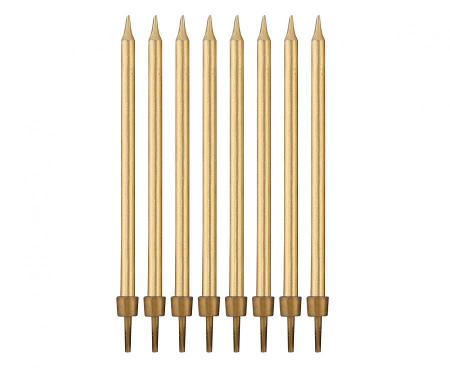 Świeczki urodzinowe z podstawkami złote 10 cm 8 szt