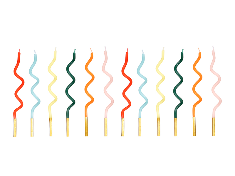 Świeczki urodzinowe zakręcone Tęcza 14 cm 12 szt