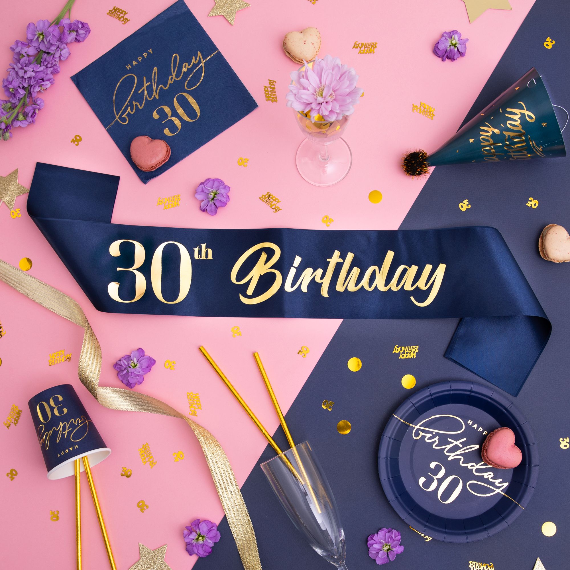 Szarfa urodzinowa 30th Birthday granatowo-złota 160 cm