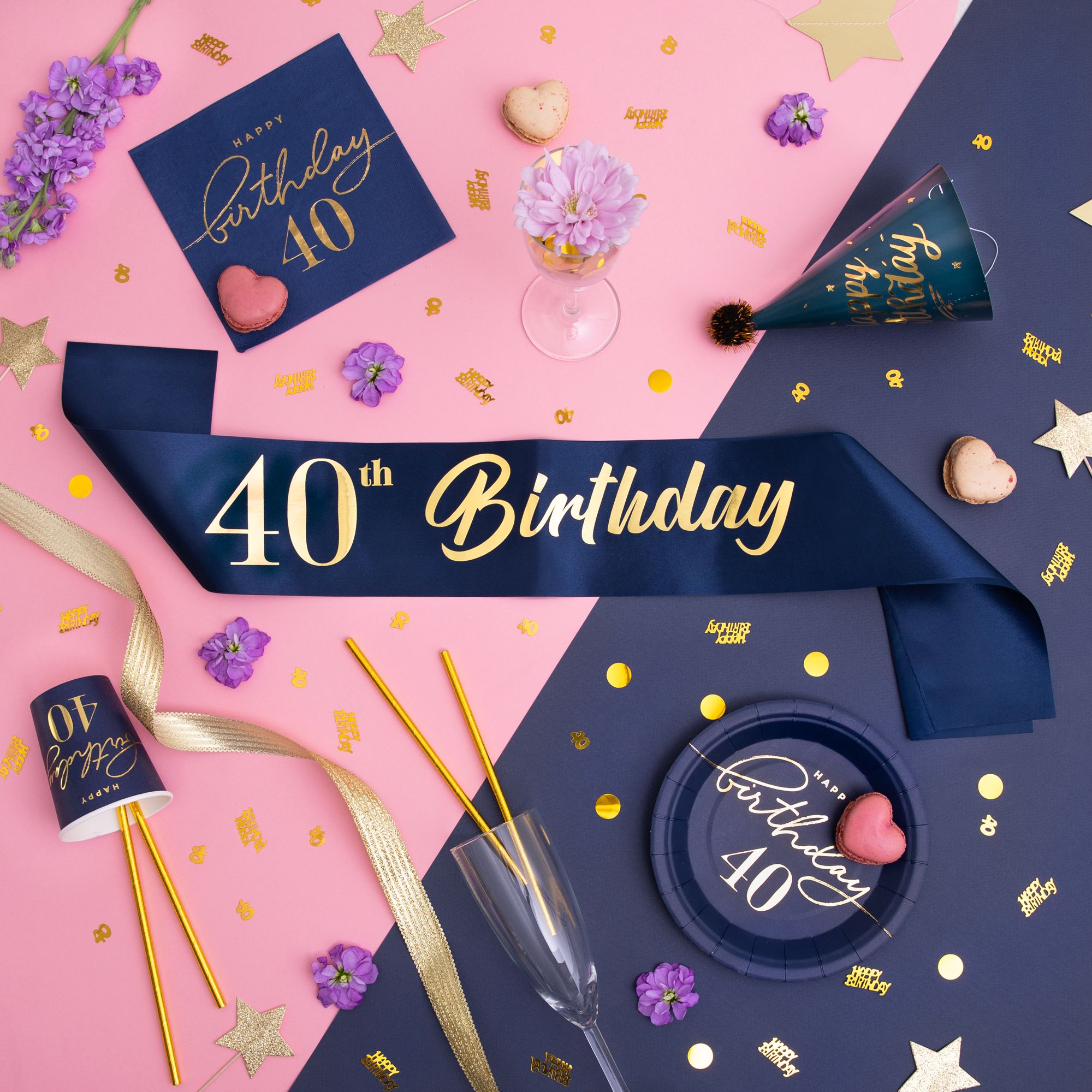 Szarfa urodzinowa 40th Birthday granatowo-złota 160 cm