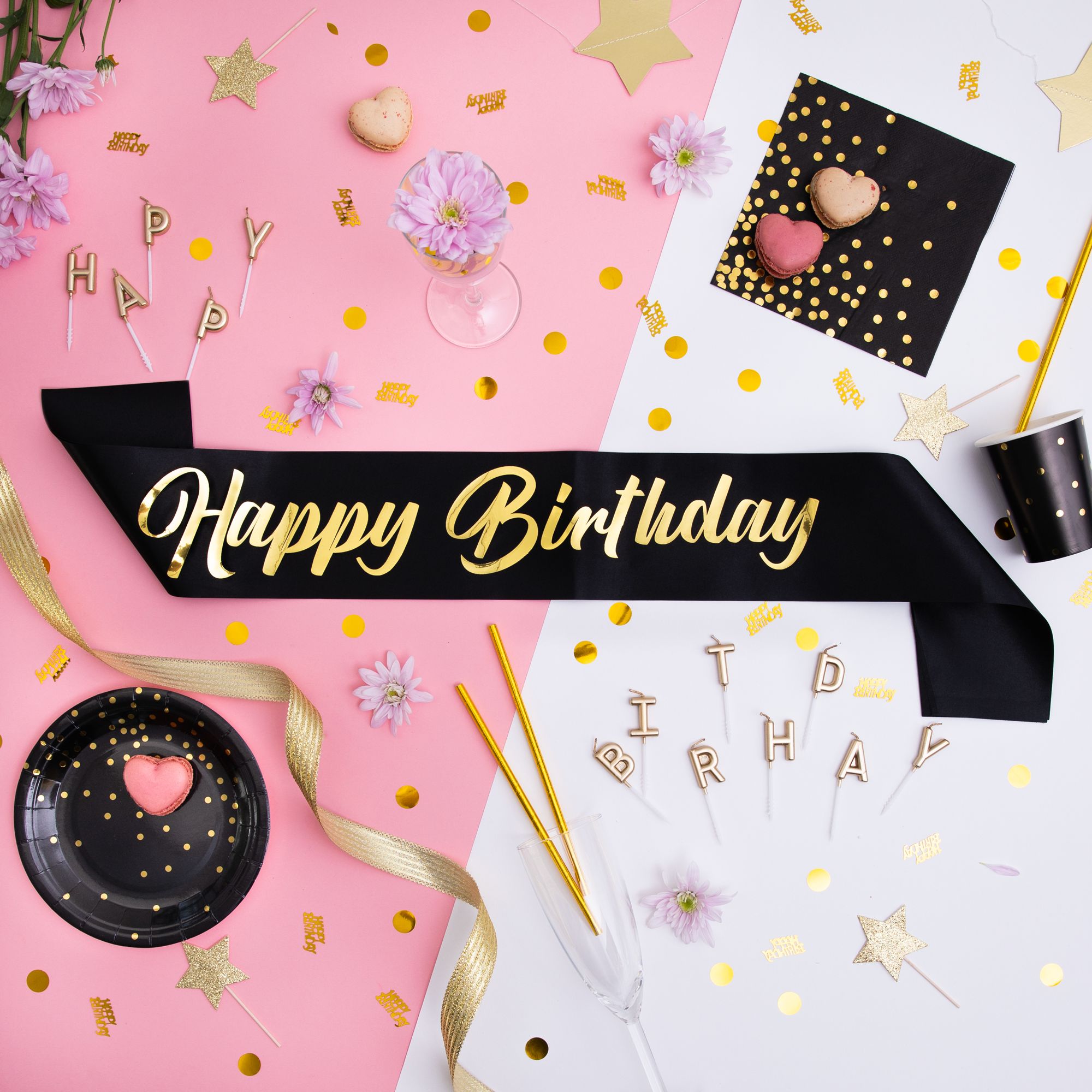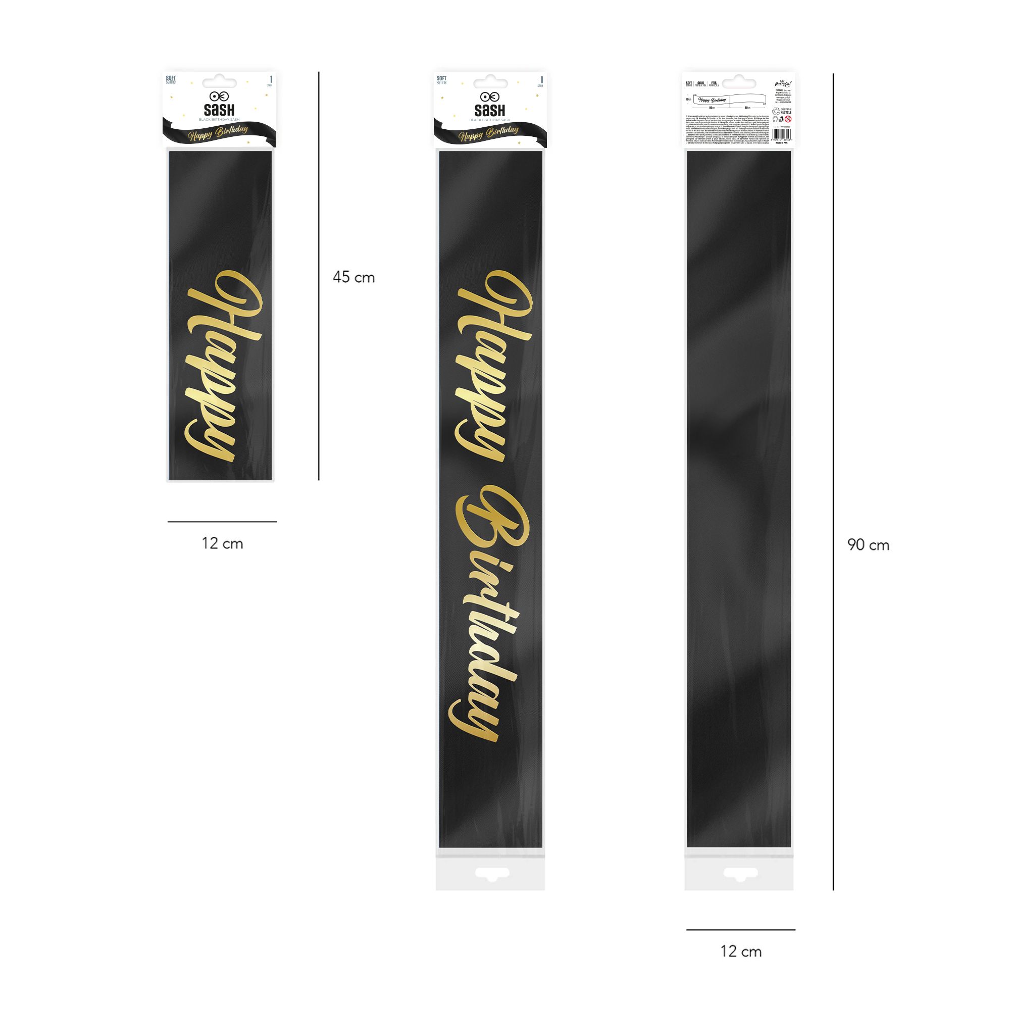Szarfa urodzinowa Happy Birthday czarno-złota 160 cm