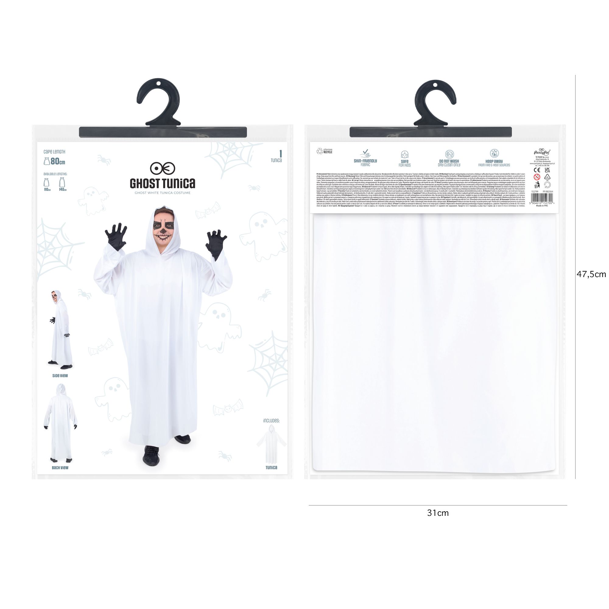 Szata z kapturem biała Duch 80 cm