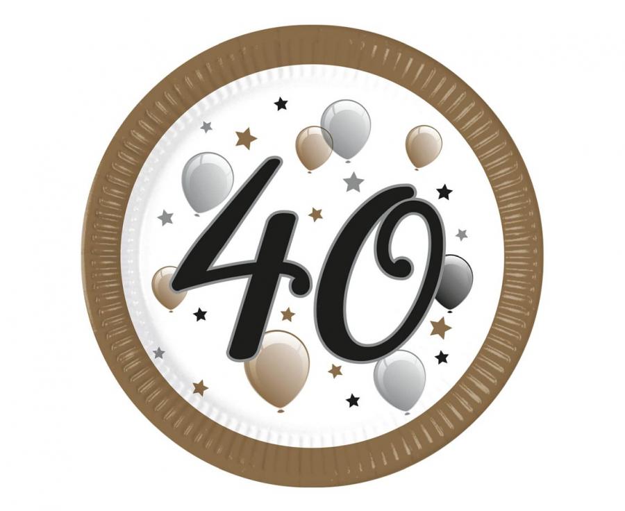 Talerzyki papierowe 40 urodziny 23 cm 8 szt