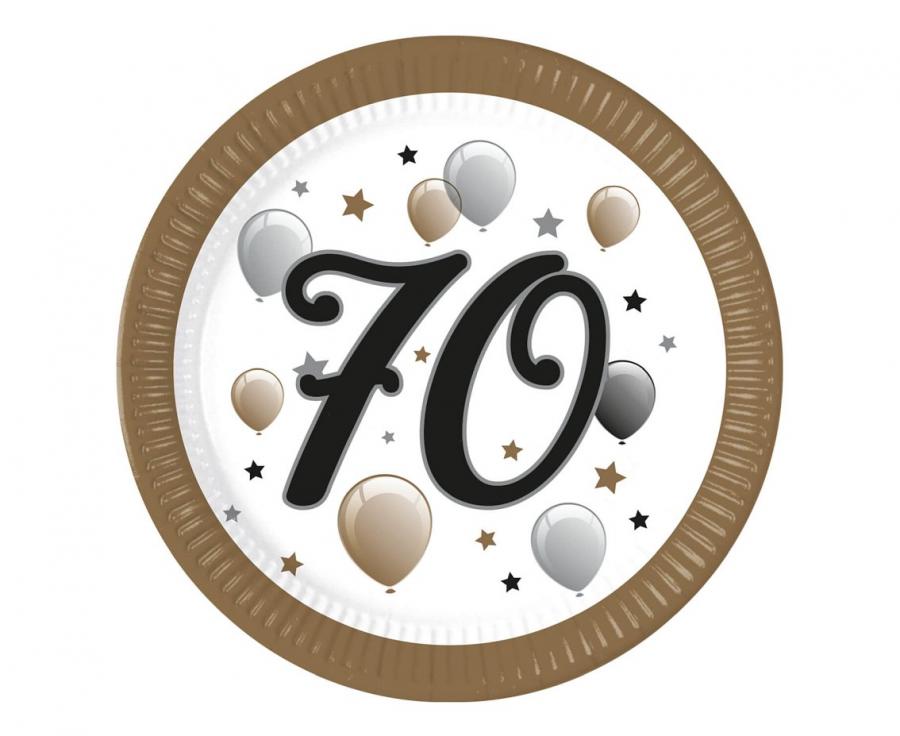 Talerzyki papierowe 70 urodziny 23 cm 8 szt