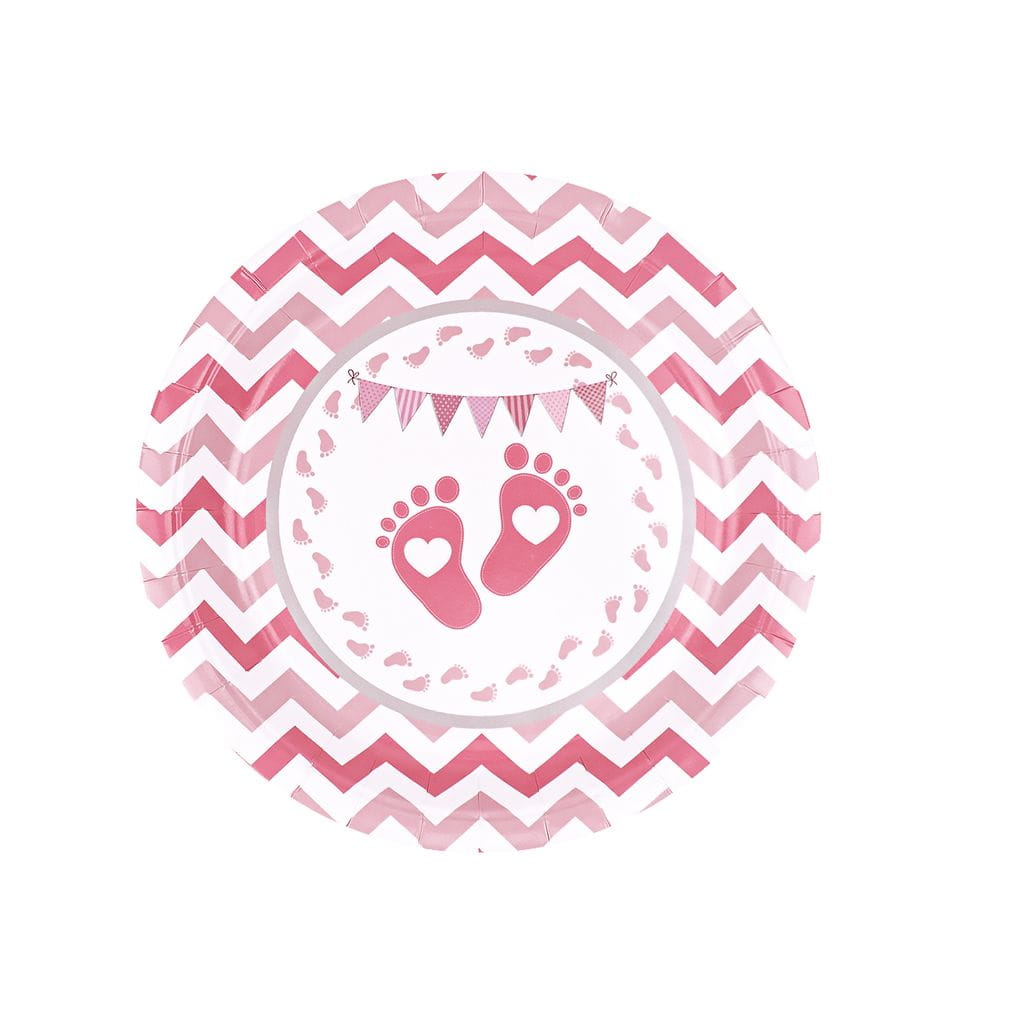 Talerzyki papierowe Baby Shower Stópki różowe 18 cm 6 szt