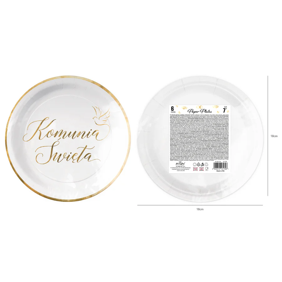 Talerzyki papierowe Komunia Święta 18 cm 6 szt