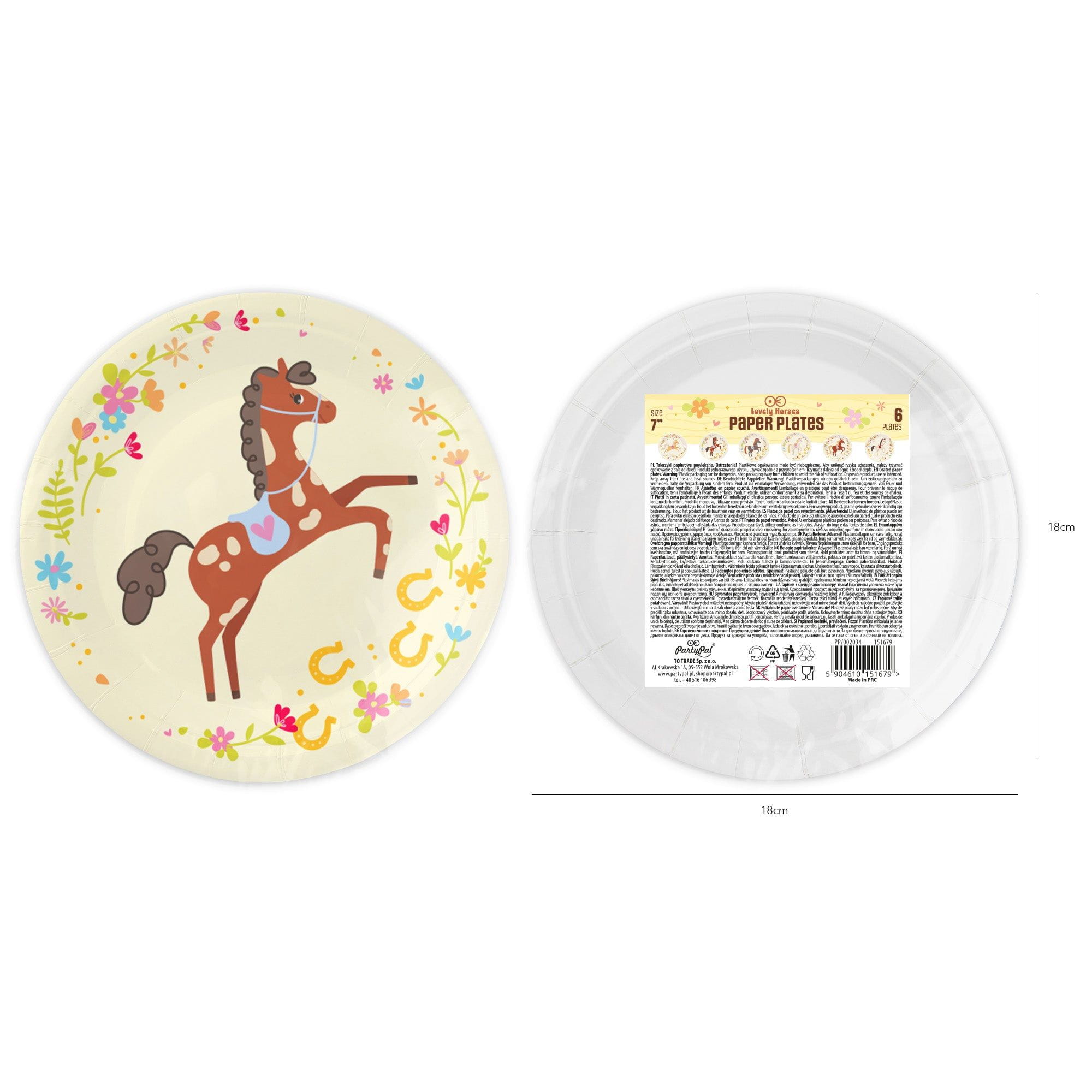 Talerzyki papierowe Koniki 18 cm 6 szt