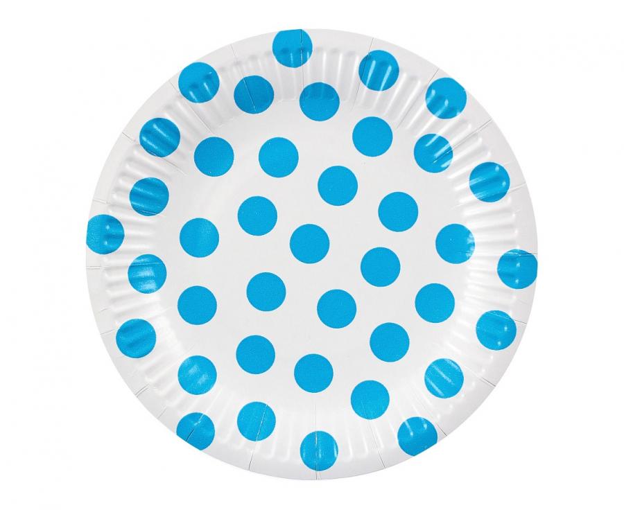 Talerzyki papierowe białe Groszki błękitne 18 cm 6 szt