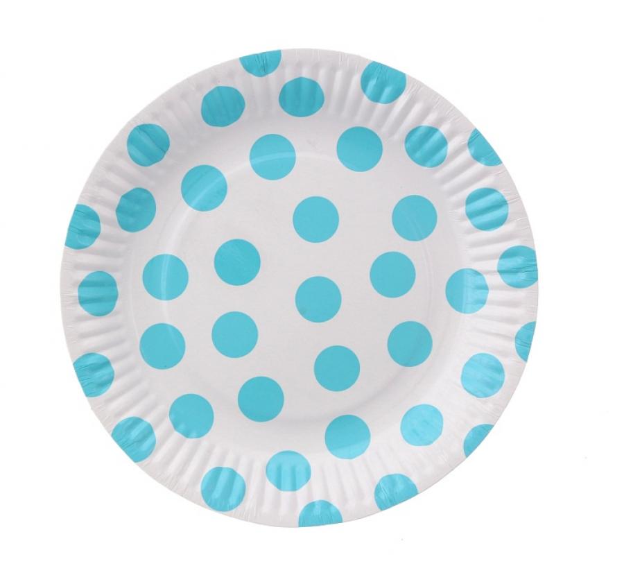 Talerzyki papierowe białe Groszki błękitne 311U 18 cm 6 szt