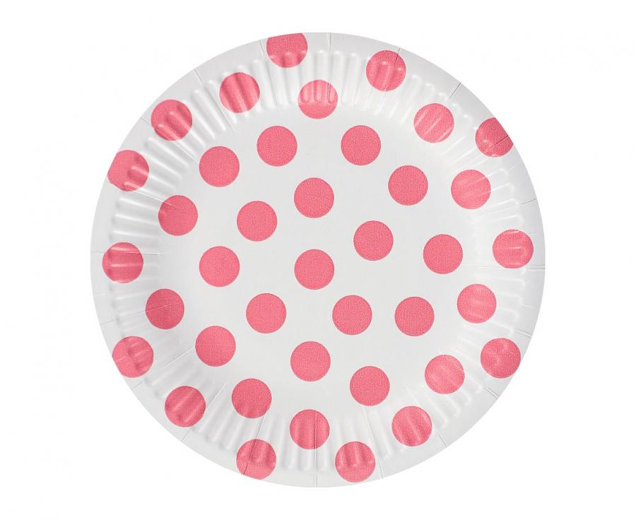 Talerzyki papierowe białe groszki różowe 18 cm 6 szt
