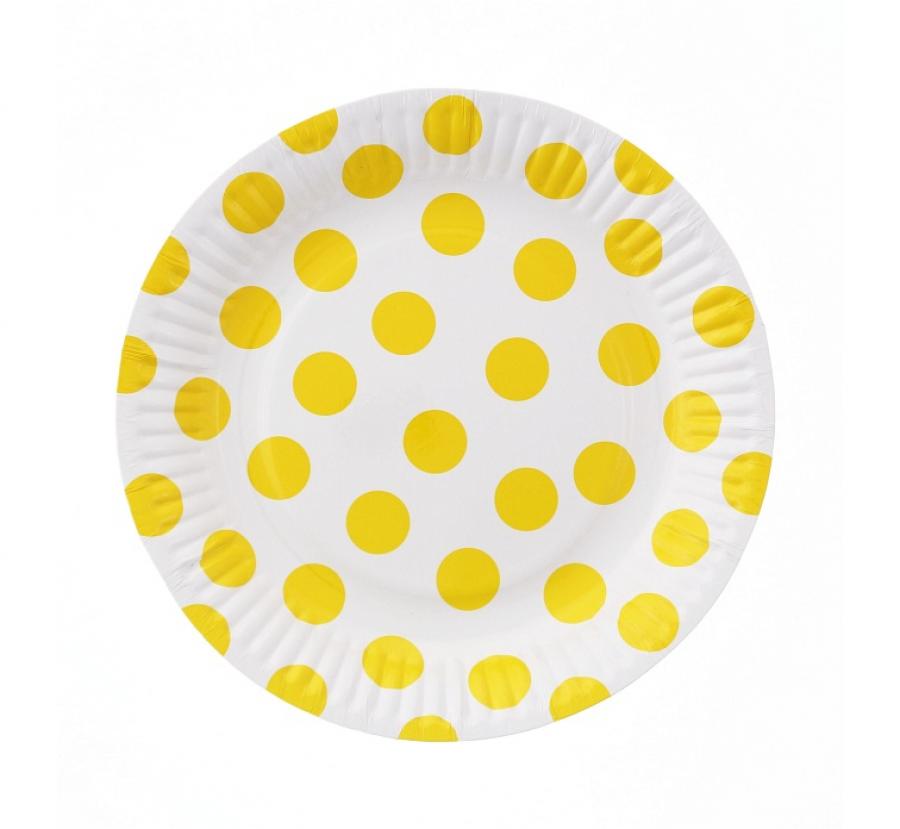 Talerzyki papierowe białe groszki żółte 18 cm 6 szt