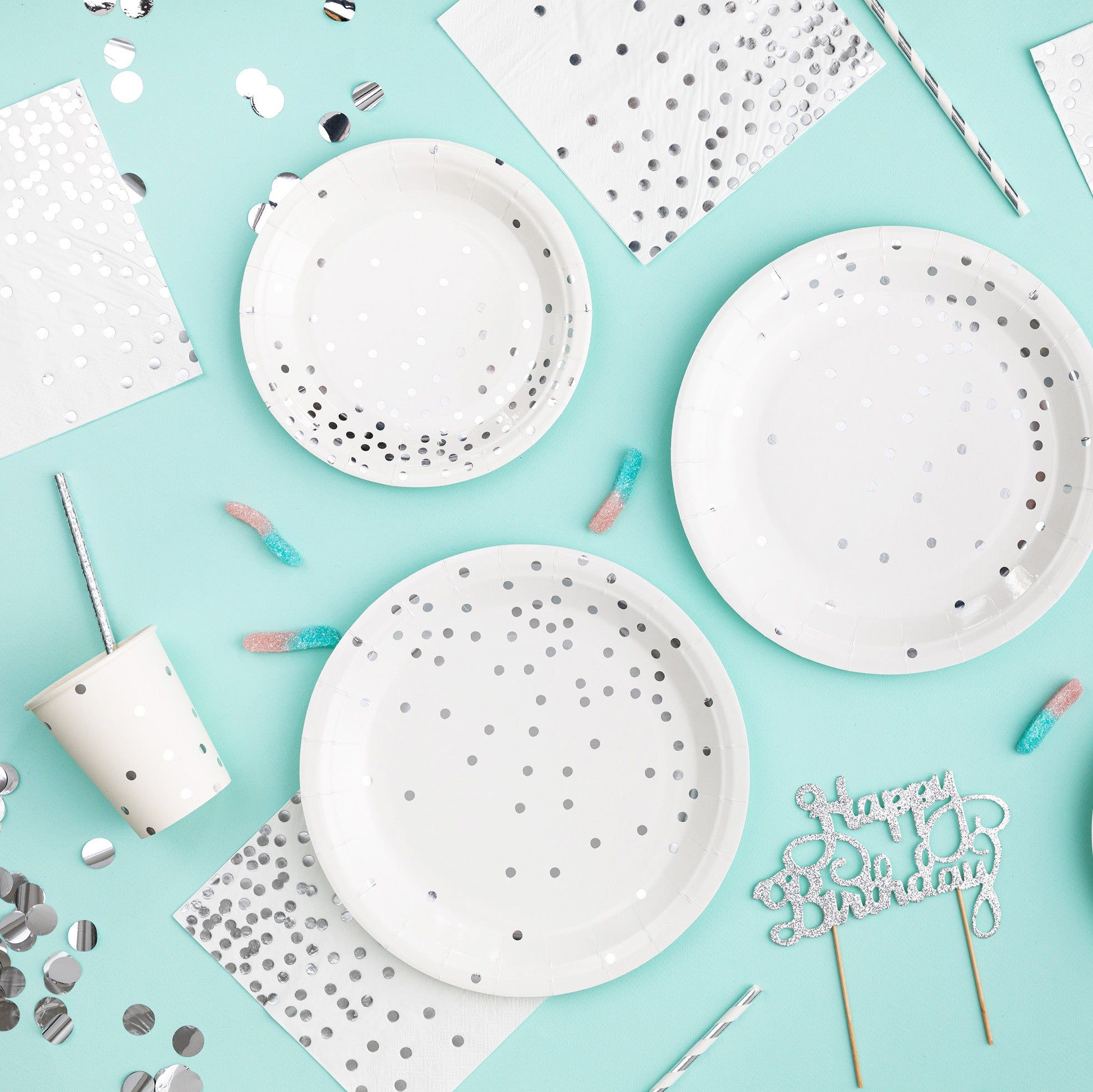 Talerzyki papierowe białe w srebrne kropki 23 cm 6 szt