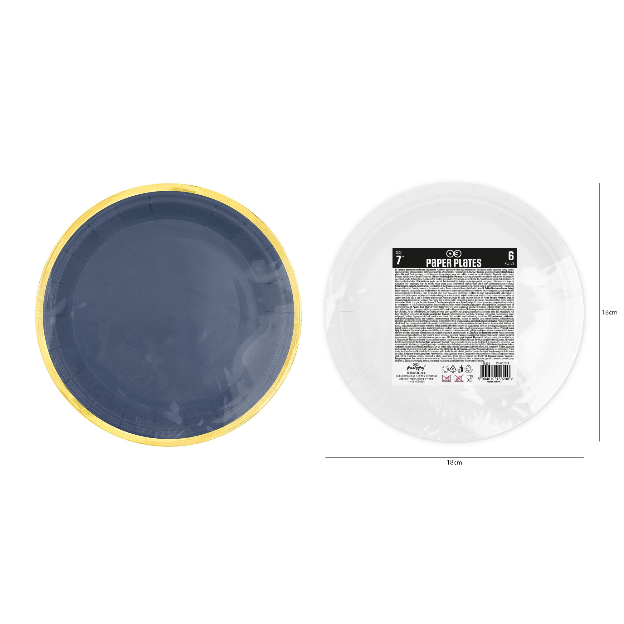 Talerzyki papierowe granatowe Classic Gold 18 cm 6 szt