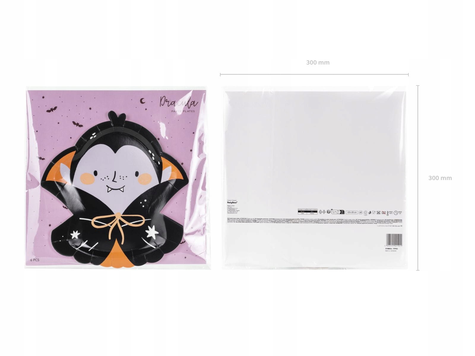 Talerzyki papierowe na Halloween Dracula 25 cm 6 szt