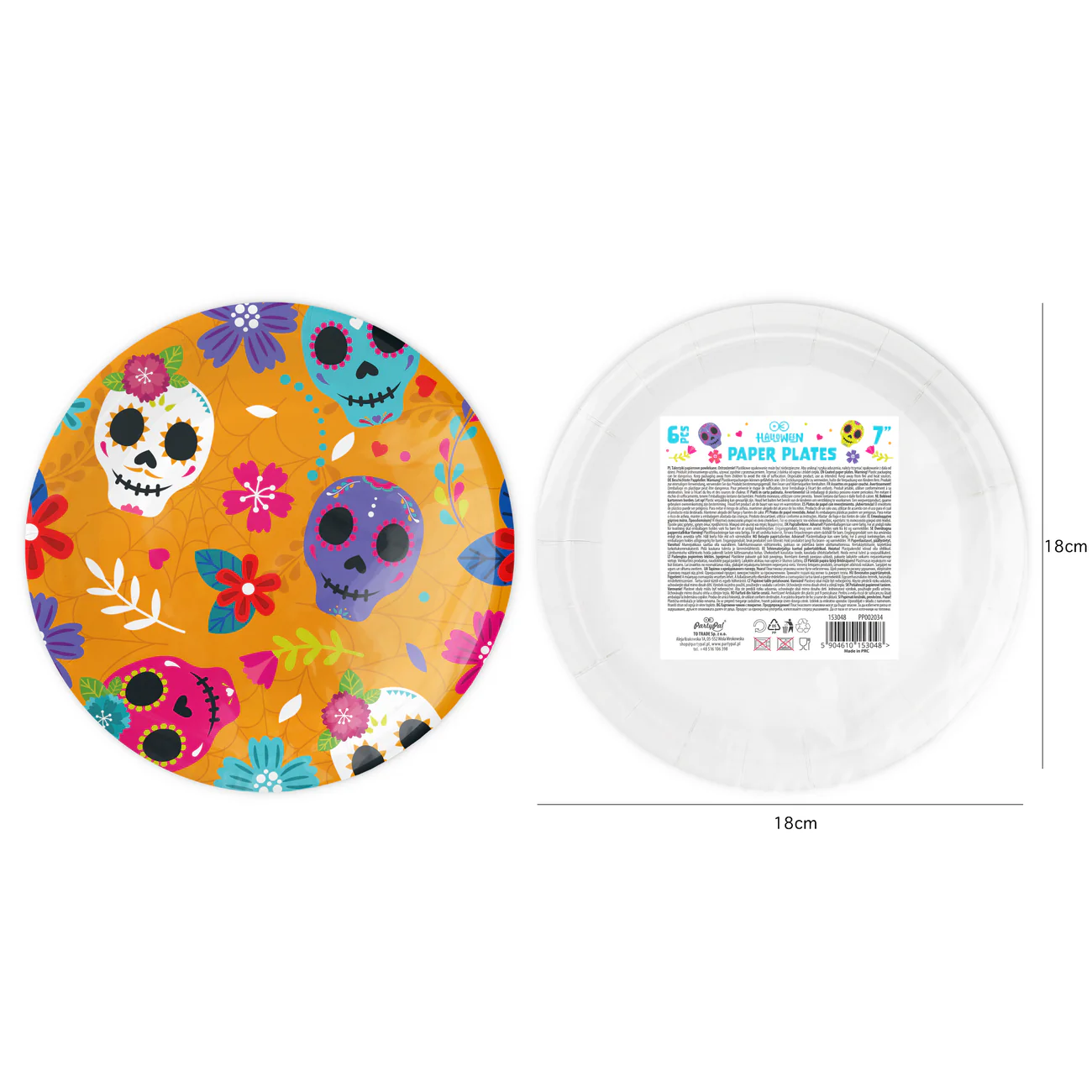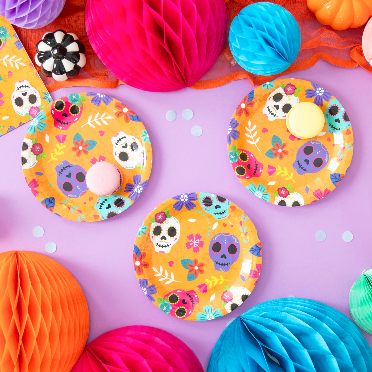 Talerzyki papierowe na Halloween Meksykańskie 18 cm 6 szt