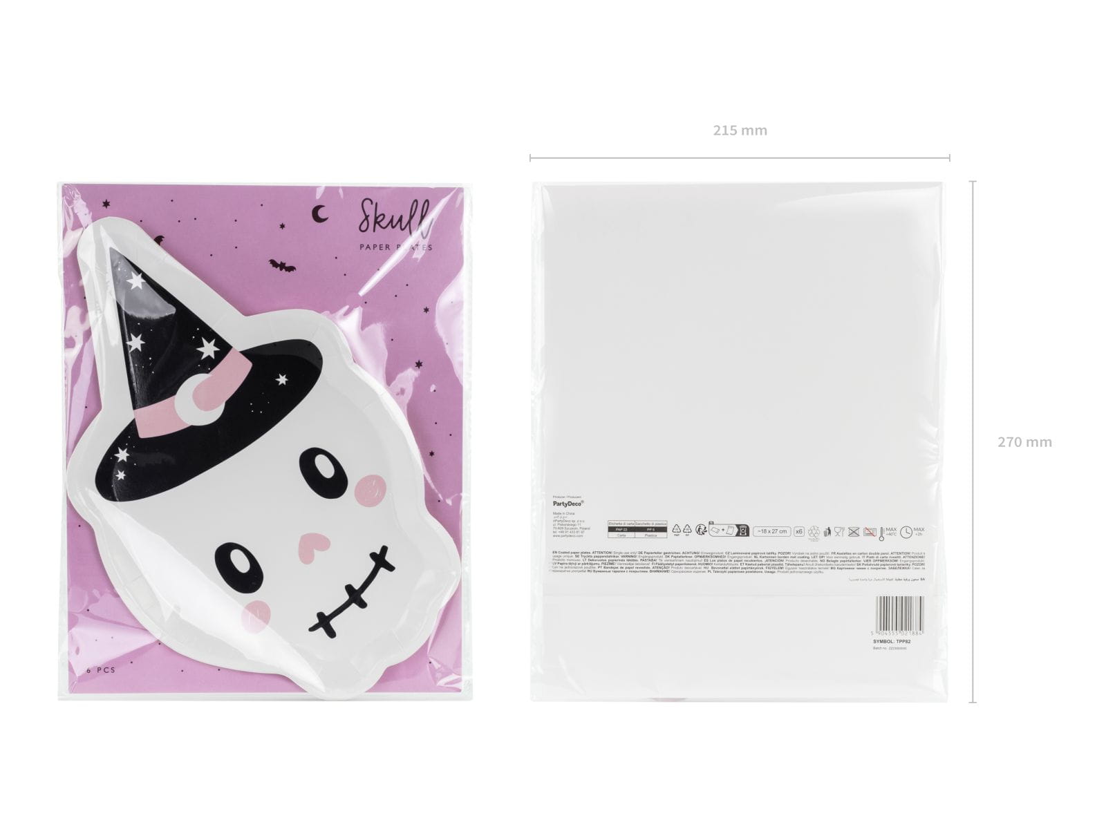Talerzyki papierowe na Halloween czaszka 27 cm 6 szt