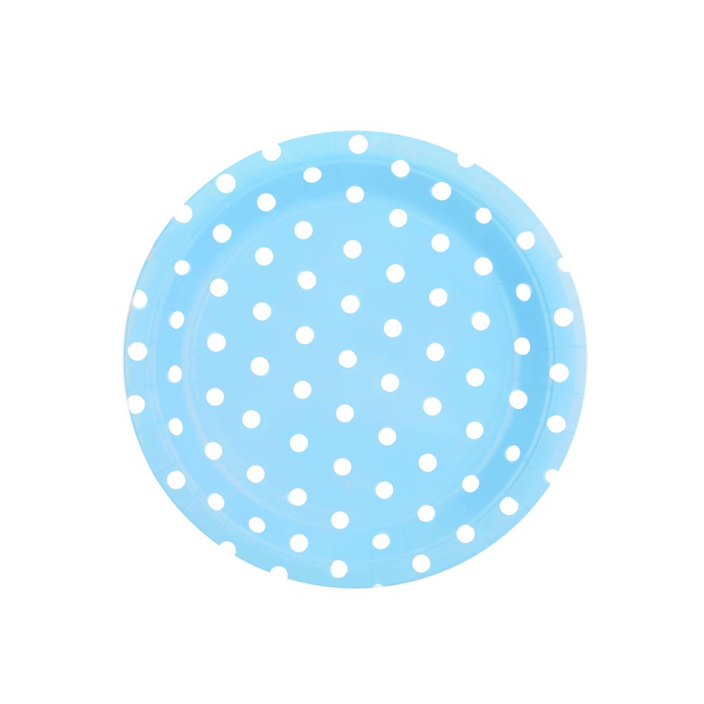 Talerzyki papierowe niebieskie w kropki 18 cm 6 szt