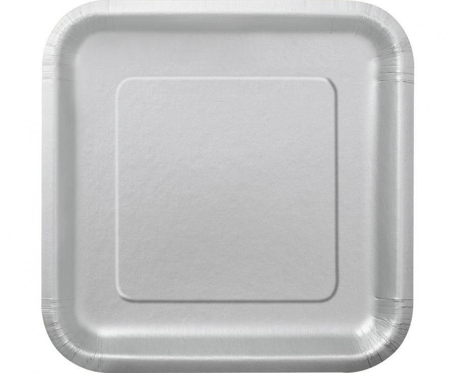 Talerzyki papierowe srebrne 23 cm kwadratowe 14 szt