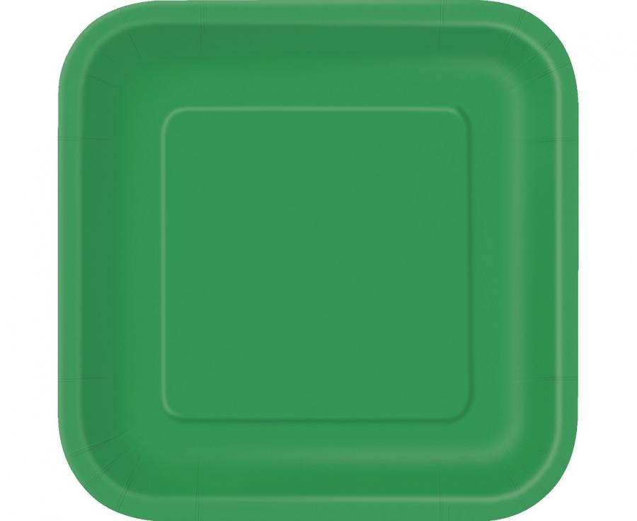 Talerzyki papierowe zielone 18 cm kwadratowe 16 szt
