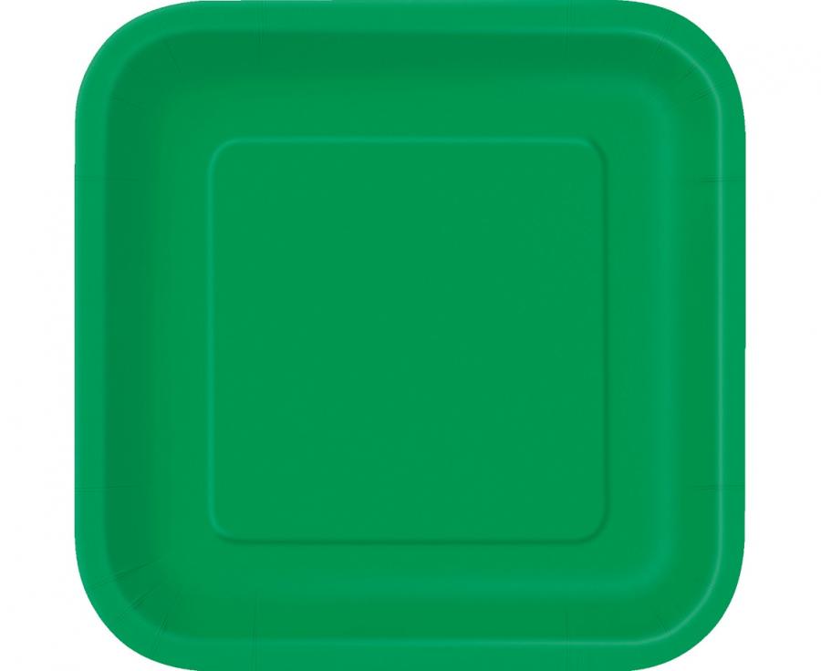 Talerzyki papierowe zielone kwadratowe 23 cm 14 szt